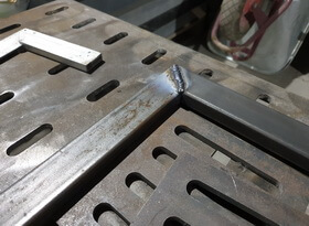 Варить начинаем сначала прихватками, затем, после контрольной проверки и замера, накладываем ровные и надёжные швы во всю длину стыка деталей.