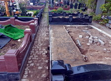 После того, как работа была проведена, клиент посчитал, что в задней части места захоронения требуется дополнительное укрепление. Мы вкрутили пять дополнительных свай, сварили новую сетку и залили ещё одну площадку, которая будет являться основанием для памятников.