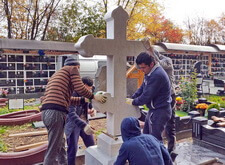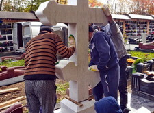 Далее мы установили мраморный крест, который отдельно приобретал сам клиент, а также вернули на место гранитное ограждение, предварительно его подрезав.